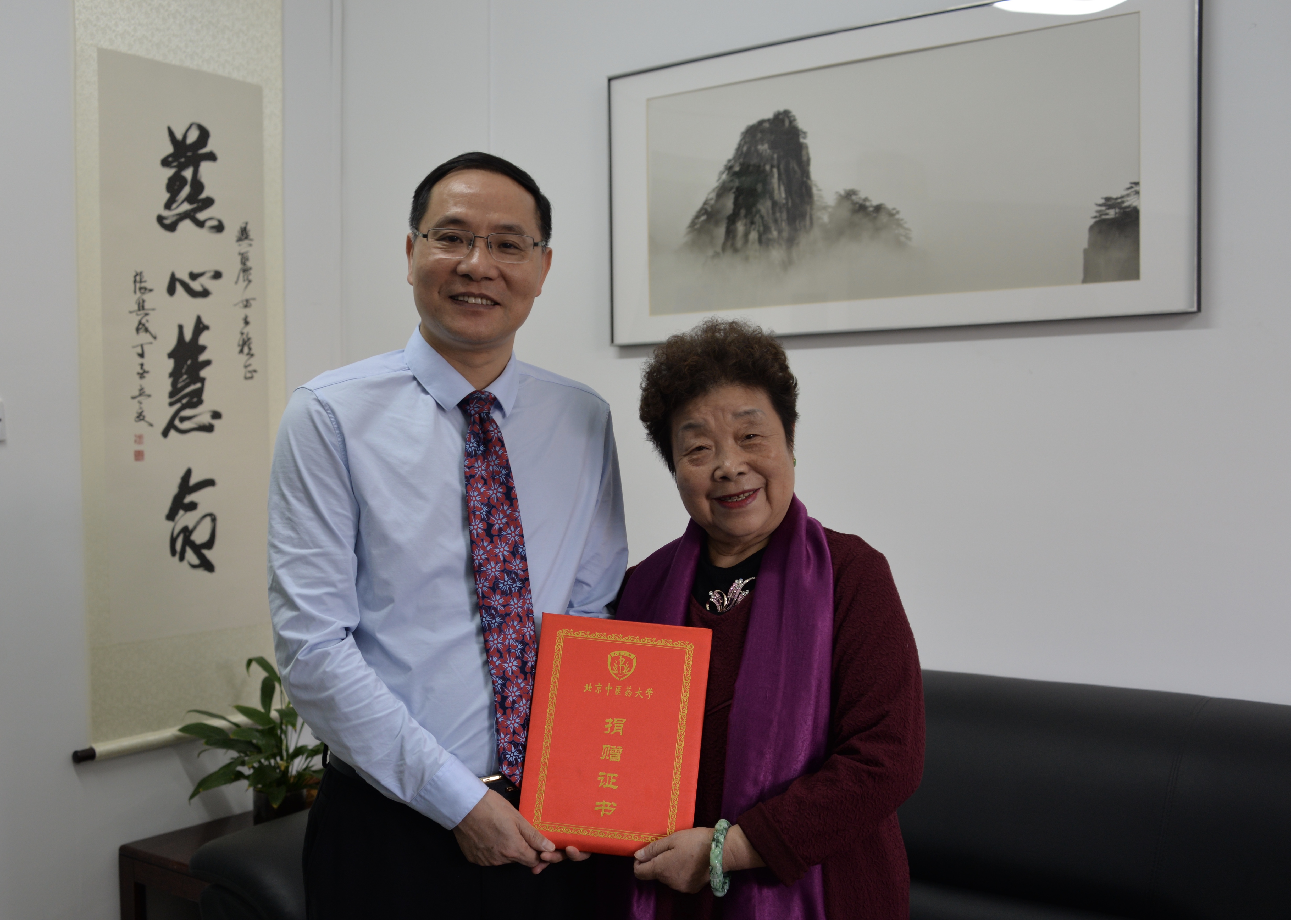 3月8日是个好日子,既是“二月二龙抬头”,又逢“三八”国际劳动妇女节,上午董建华院士的长女董薇薇女士及弟子代表李军祥先生到校教育基金会,将共同捐赠的43万元捐赠给母校,设立“董建华中医药发展专项基金项目”,用于学术传承与创新,以及研究生奖学金等事宜。教育基金会秘书长闫兴丽,研究生工作部部长兼研究生院副院长范璐以及校友会基金会工作人员参加了捐赠活动,并对基金项目的实施方案进行了讨论。